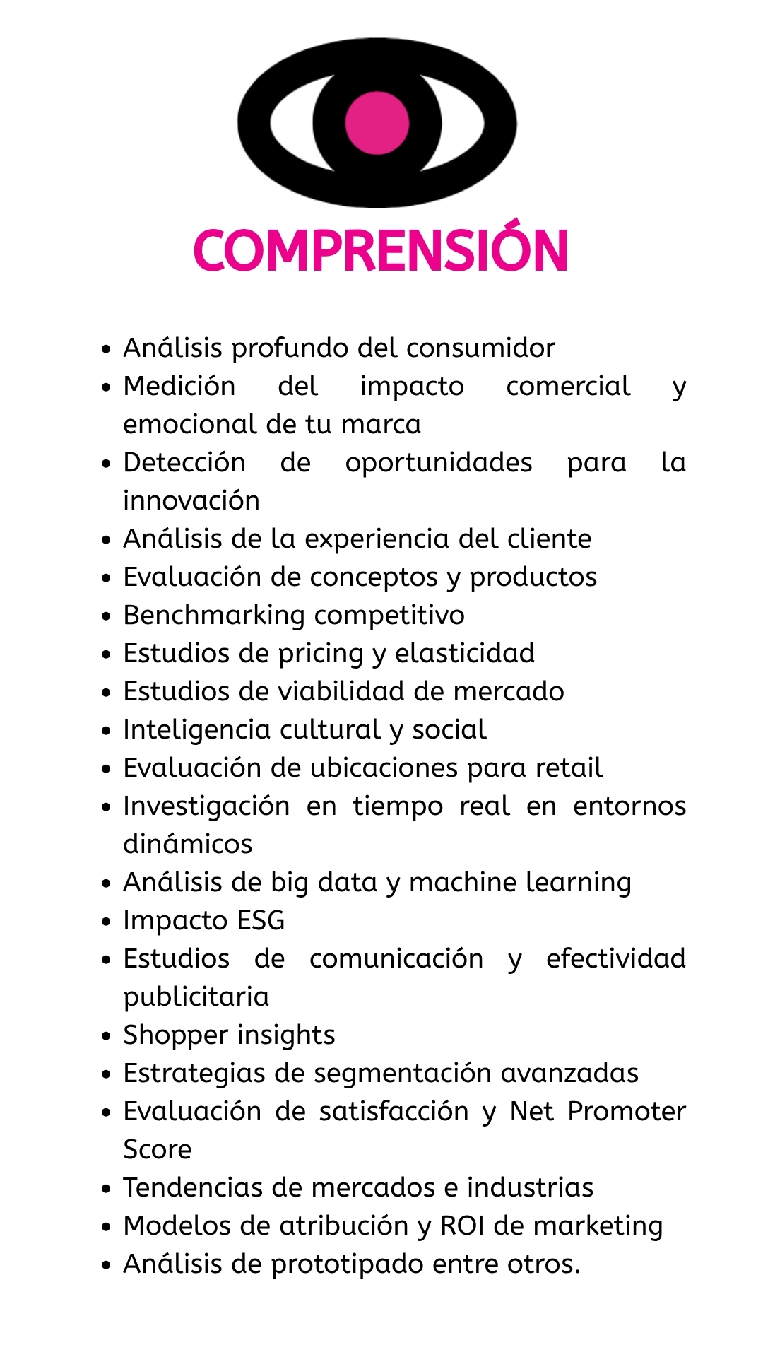 Nacimos con una vocación de investigación pero nuestra diferencia es que los datos y los insights deben servir para hacerte más fuerte, no sólo para reportarte el lugar en el que te encuentras sino provocar que tu posición se fortalezca. Creemos en que el conocimiento debe aplicarse para prosperar, para activar iniciativas y para hacer la diferencia en el mercado.